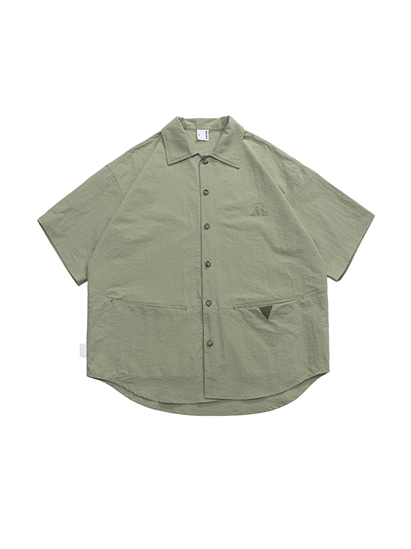 Manga corta retro japonesa suelta verde oliva