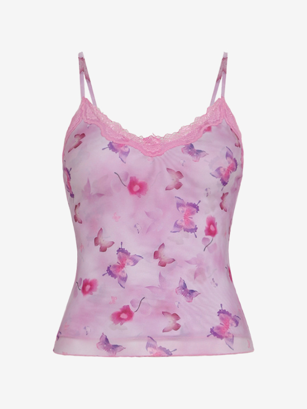 Top de tirantes de encaje con estampado de mariposas