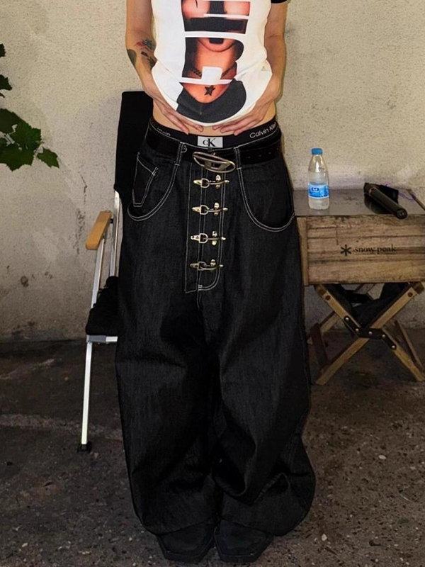 Vaqueros boyfriend con estampado de transferencia en frío y encaje de perlas