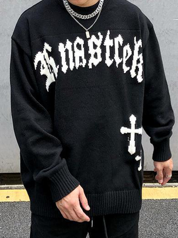 Suéter extragrande con estampado de letras cruzadas vintage para hombre