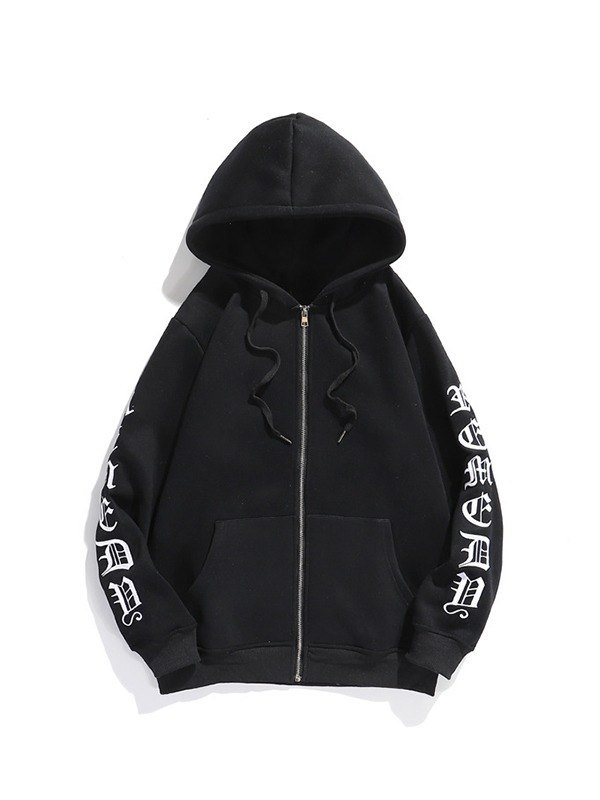 Sudadera con capucha y cremallera con letras góticas para hombre