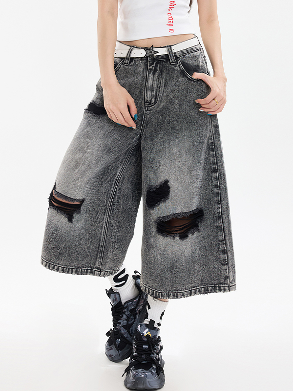 Pantalones cortos vaqueros holgados estilo vintage americano