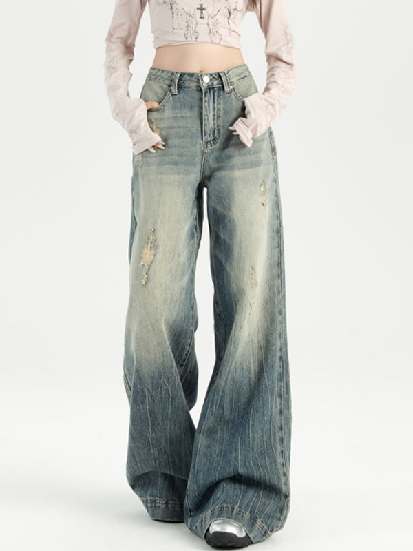 Vaqueros boyfriend desgastados y lavados estilo retro