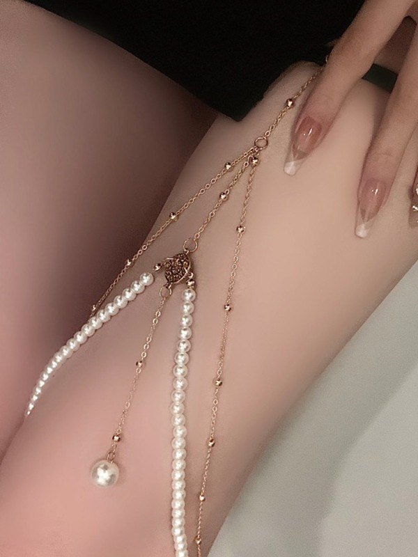 Arnés de cadena para pierna con perlas de imitación en capas
