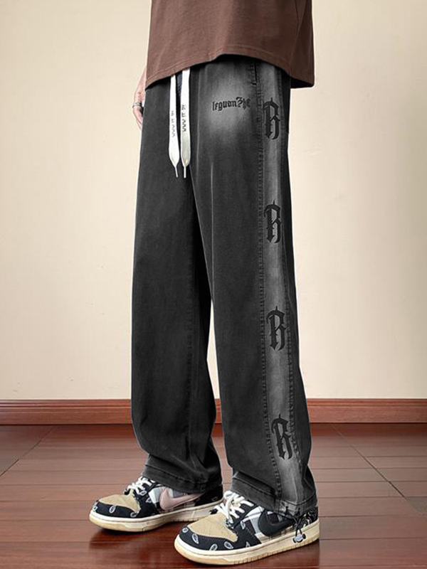 Vaqueros de pierna recta con cordón y estampado vintage para hombre