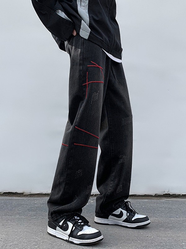 Jeans rectos desgastados cosidos para hombre