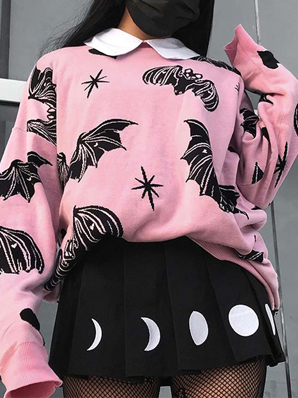 Suéteres oversize con estampado de murciélagos
