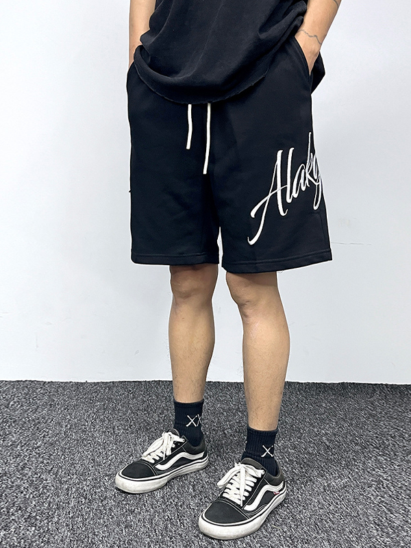 Pantalones cortos con letras bordadas informales, rectos y sueltos para hombre