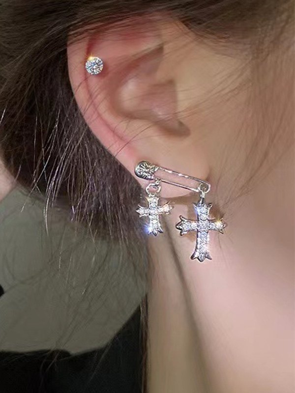 Aretes con dije de cruz de diamantes de imitación con imperdible