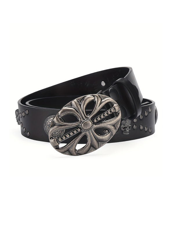 Cinturón con hebilla recortada desgastada con remache punk