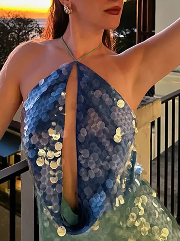 Composición del tejido: fibra de poliéster. Corte: entallado. Escote: halter. Largo de manga: sin mangas.