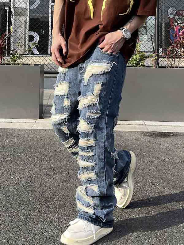 Diseño único: Estos jeans cuentan con un diseño lavado único que les da un estilo vintage y aspecto clásico El diseño rasgado irregular agrega un estilo urbano y fresco que se destaca entre la multitud.