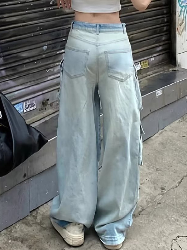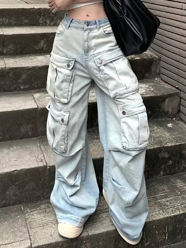 Pantalones vaqueros cargo de trabajo con bolsillos estilo retro americano