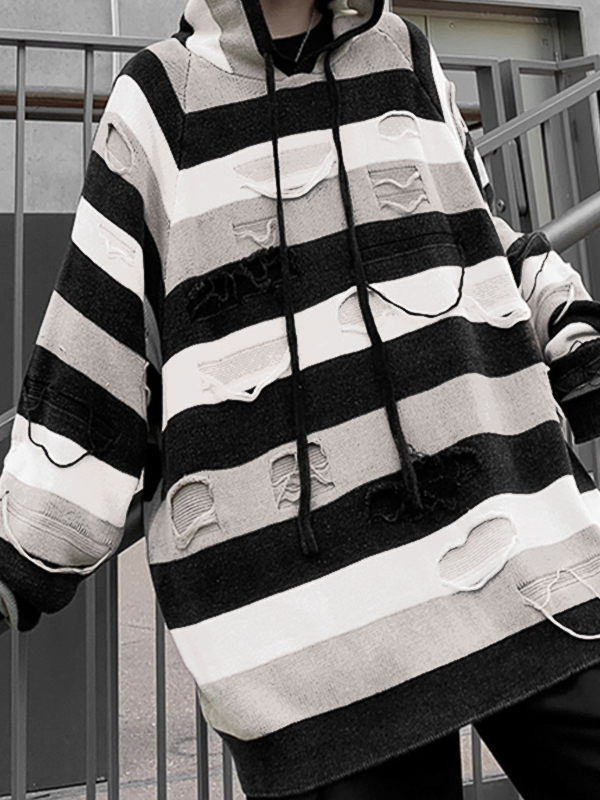 Sé el primero en valorar “Suéter con capucha rasgado a rayas en contraste para hombre”
