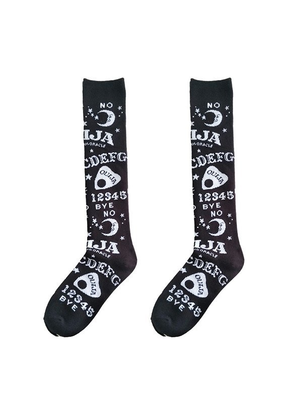 Calcetines Largos Negros Estampado Mixto