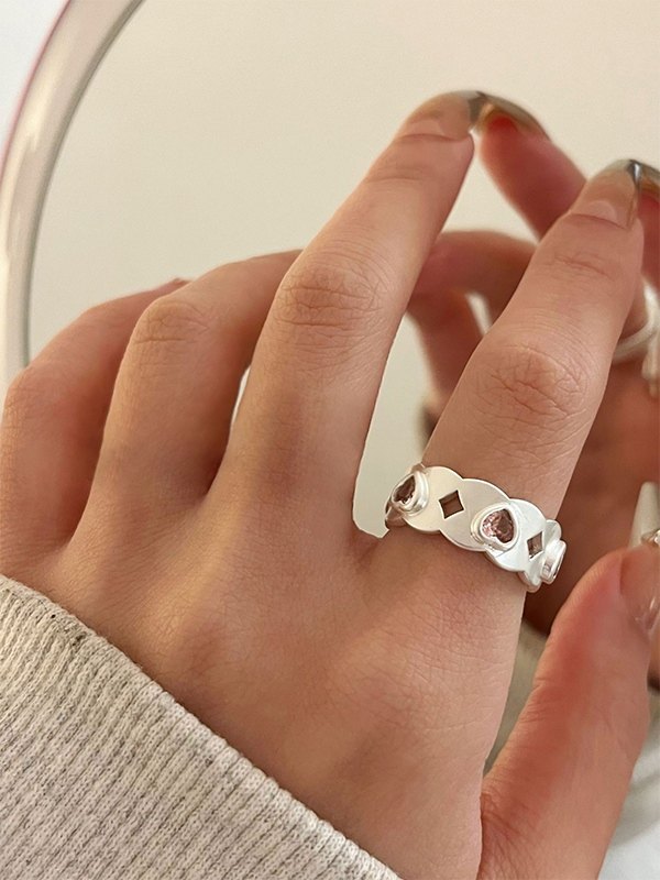 Anillo de brazalete con dije de corazón de diamantes de imitación