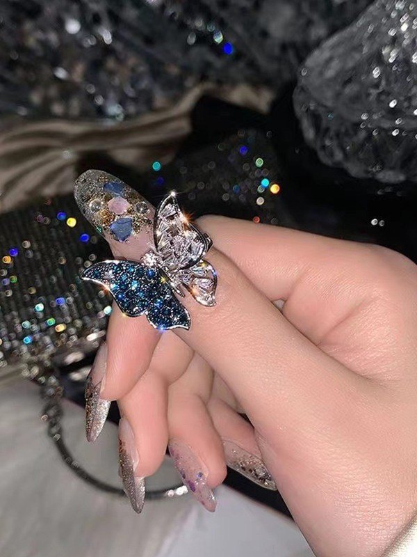 Anillo colgante de mariposa con diamantes de imitación