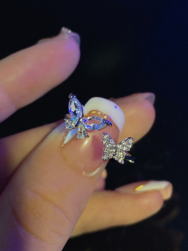 Anillo abierto con diamantes de imitación y mariposa de hada