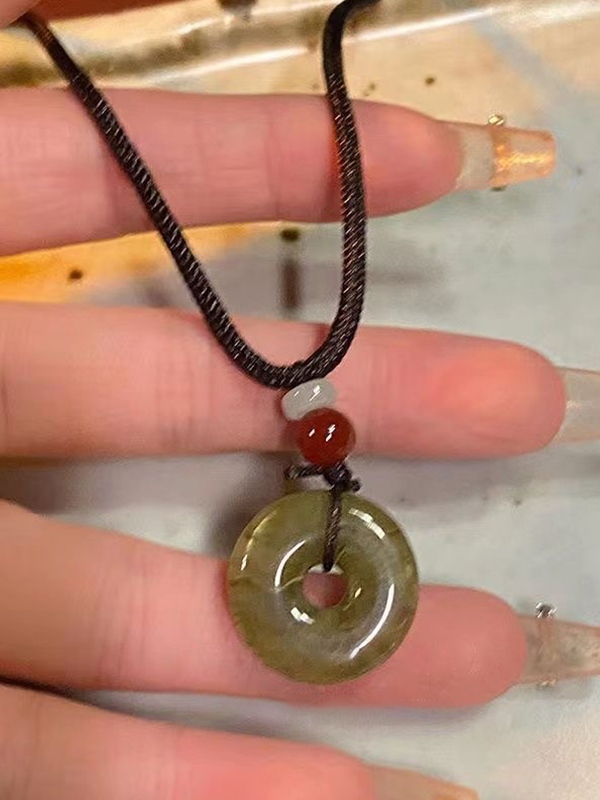 Collar de cuerda trenzada con colgante de jade ahuecado