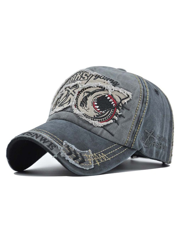 Gorra de béisbol desgastada con bordado de tiburón vintage