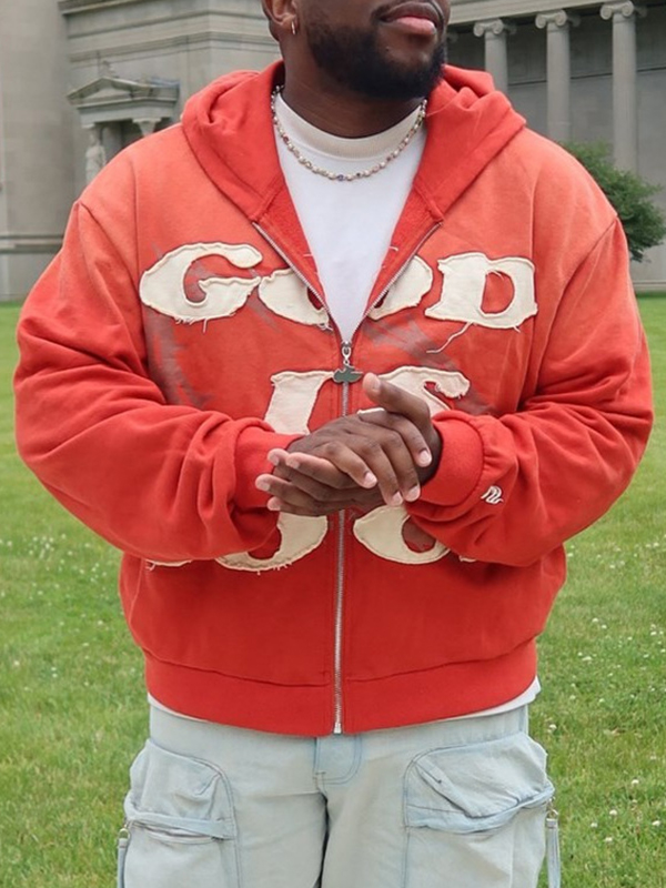 Sudadera con capucha y cremallera con letras góticas para hombre