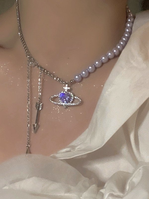 Collar de perlas de imitación con dije de corazón de diamantes de imitación con cadena de borlas