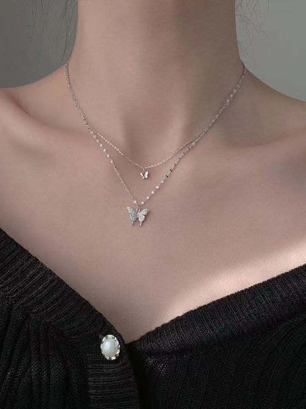 - Gianluigi Belloli en Collar de doble capa con colgante de mariposa de diamantes de imitación