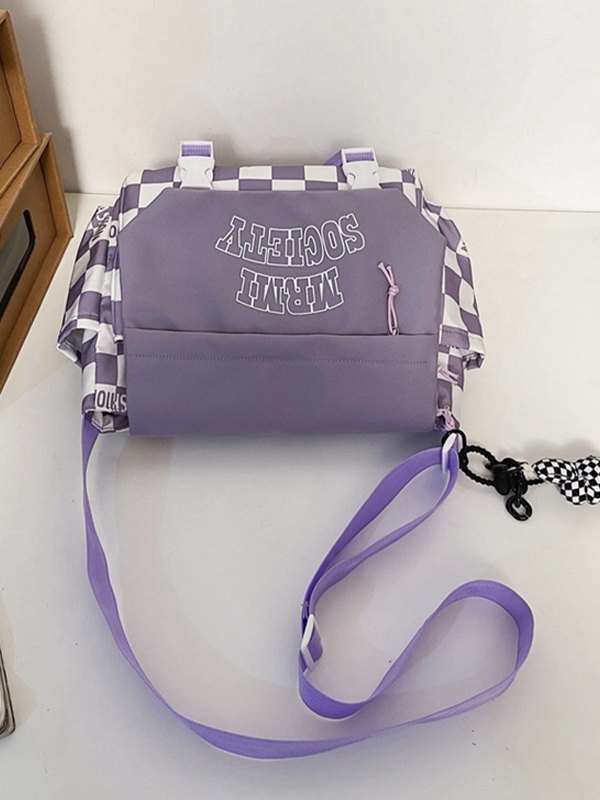 Detalles: tiene un colgante de dibujos animados desmontable, cuenta con una correa ajustable para el hombro, gráfico de logotipo en la parte delantera, con bolsillos funcionales, correas de doble hebilla y diseño de cierre con cremallera.