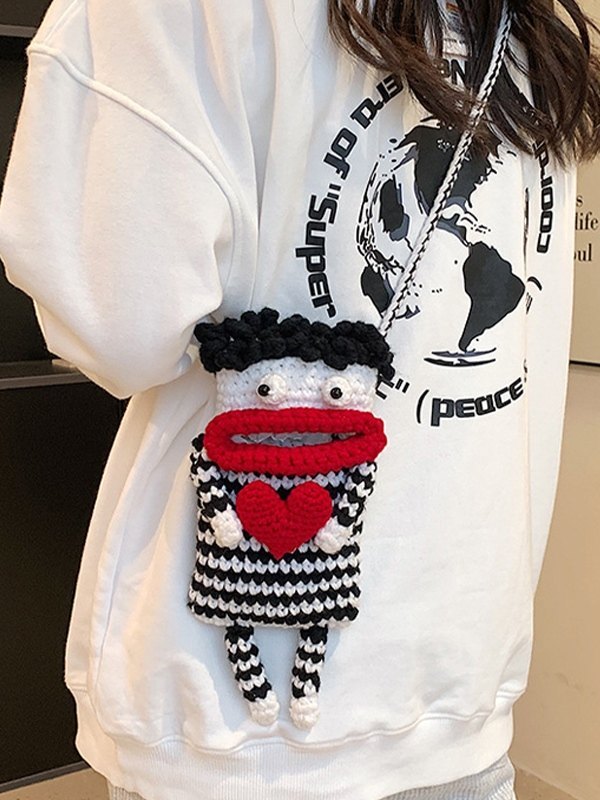 Bolso bandolera de teléfono de dibujos animados de punto de ganchillo hecho a mano