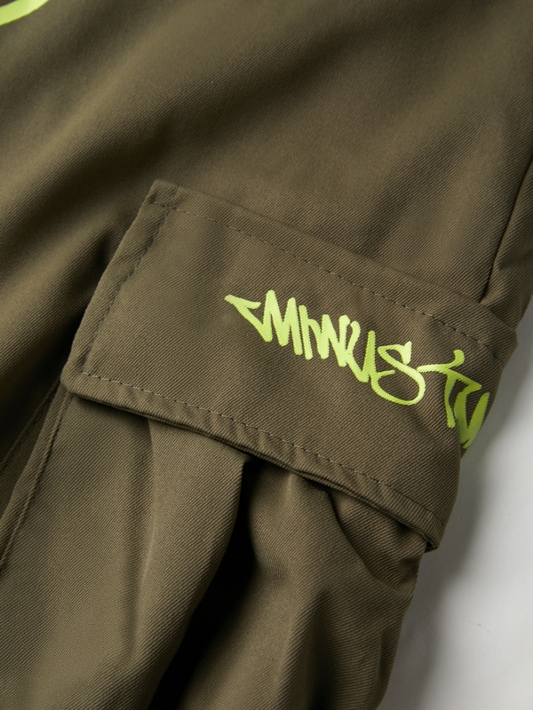 Pantalones anchos con cordón y múltiples bolsillos con estampado de letras para hombre