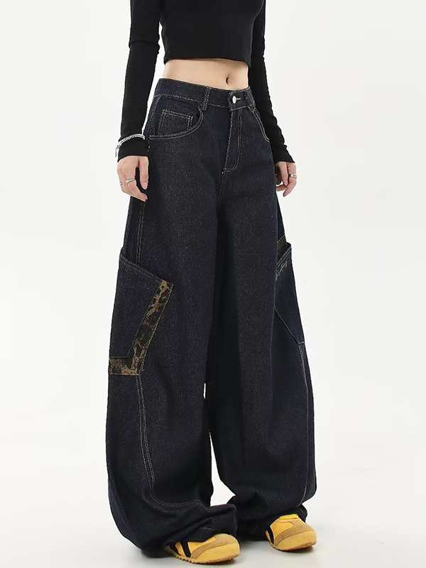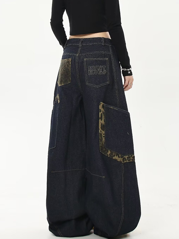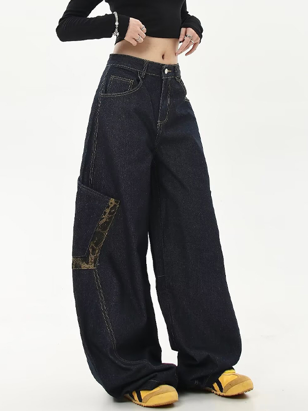 Vaqueros boyfriend con costuras y estampado de leopardo estilo retro americano