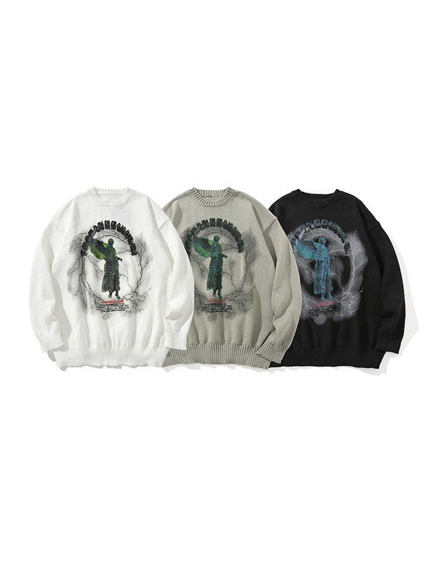 Longitud de la manga: Manga larga< br />Descripción: Confeccionados con tejido de punto de algodón, estos elegantes punk-vibe presentan un diseño de estatua de letras oscuras en la parte delantera, con hombros caídos, ribetes acanalados en el cuello, los puños y el dobladillo.