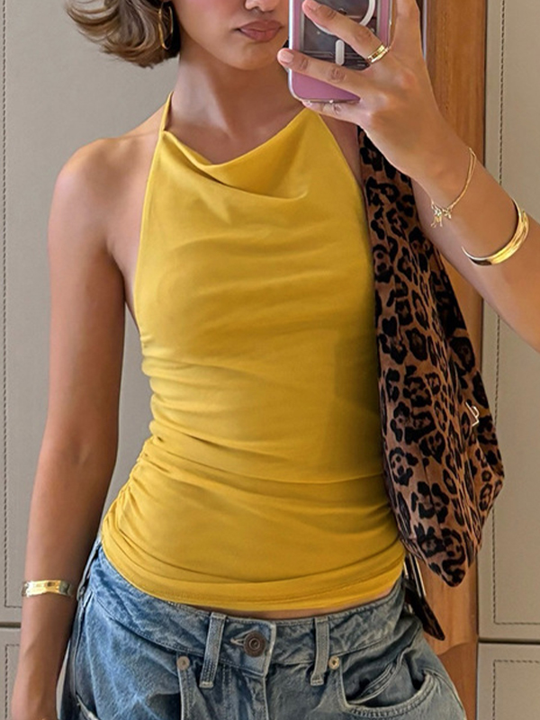 €387,00€166,00Seleccionar opcionesComposición del tejido: fibra de poliéster. Corte: entallado. Escote: halter. Largo de manga: sin mangas.