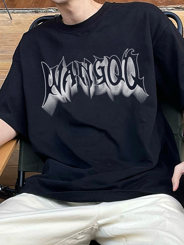 - Farid Amazit en Camiseta de manga corta con cuello en V y estampado de letras